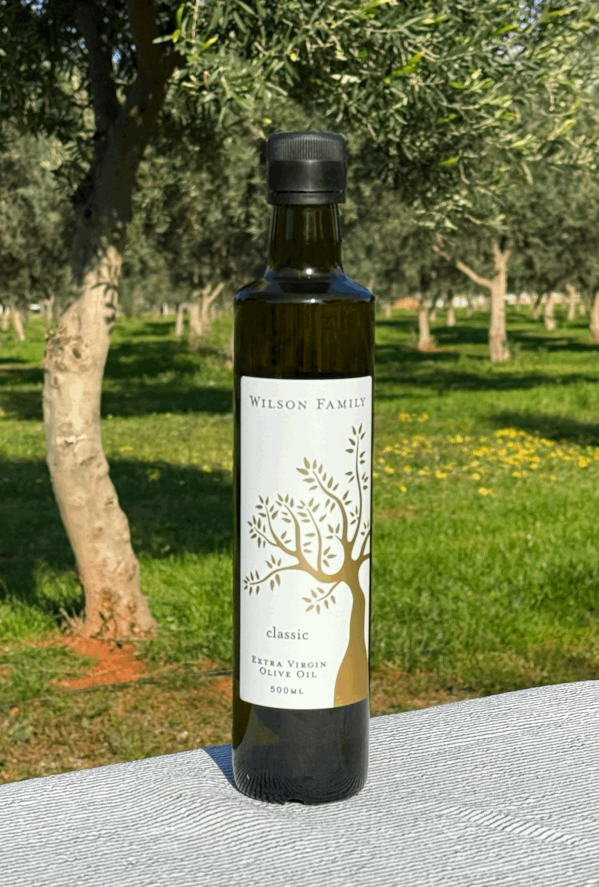 Classic Extra Virgin 500ml from $24.50 Select Quantity Bottle Half Dozen Dozen Add To Cart Added! Sunrise Early Harvest 500ml from $24.50 Select Quantity Bottle Half Dozen Dozen Add To Cart Added! Sunset Late Harvest 500ml from $24.50 Select Quantity Bottle Half Dozen Dozen Add To Cart Added! olive d'or Extra Virgin 500ml $24.50 Add To Cart Added! Sunset Chilli Infused 500ml $24.50 Add To Cart Added! Caramelised Balsamic Vinegar 500ml $29.50 Add To Cart Added! Dozen Extra Virgin Olive Oil Sale Price: $220.50 Original Price: $280.00 Sale Add To Cart Added! Wilson Family Hamper $110.00 Sold Out Sold Out Added! Narromine Honey 625gm $16.50 Sold Out Sold Out Added! Just the Juice Hamper $80.00 Sold Out Sold Out Added! Wilson Family Gift Tags from $2.50 Select Color Green with Pink Tree Chocolate with Pink Tree Red with White Tree Stone with Charcoal Tree Blue with White Tree Pack of all five Add To Cart Added! Beeswax Candle 500gm $44.50 Add To Cart Added! Olive Oil Hand Soap 500ml $39.50 Add To Cart Added! Wilson Family Farm Cap $49.50 Olive Stone Navy Add To Cart Added! Wilson Family Jute Bag from $7.00 Select Size Small Medium Add To Cart Added! Honey Dipper $5.00 Add To Cart Added!